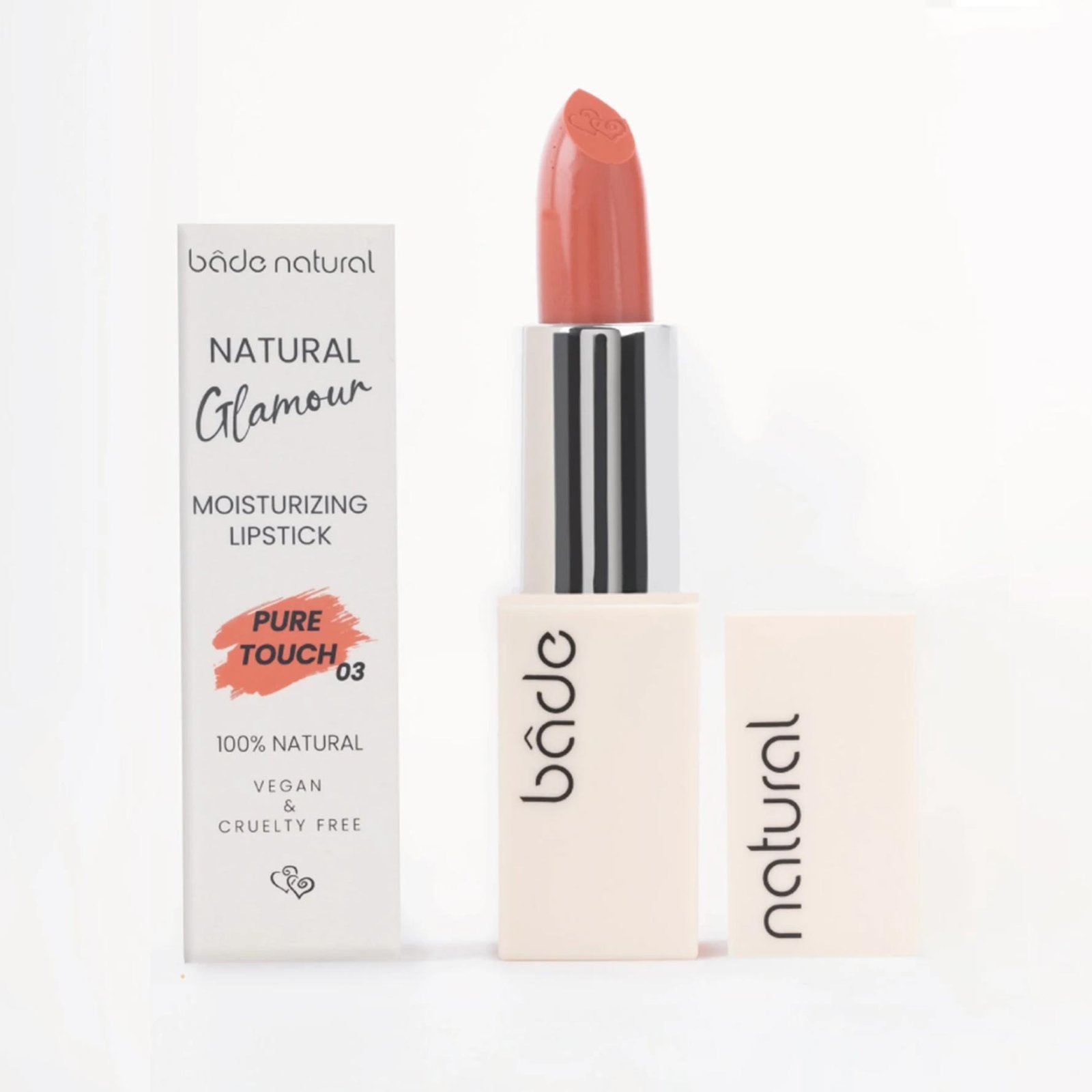 Bade Natural Хидратиращо червило Pure Touch 03 се произвежда със суровини, доставени от сертифицирани производители и след тестове за контрол на качеството в нашия R&D център, процесите на пълнене се завършват в нашата фабрика.