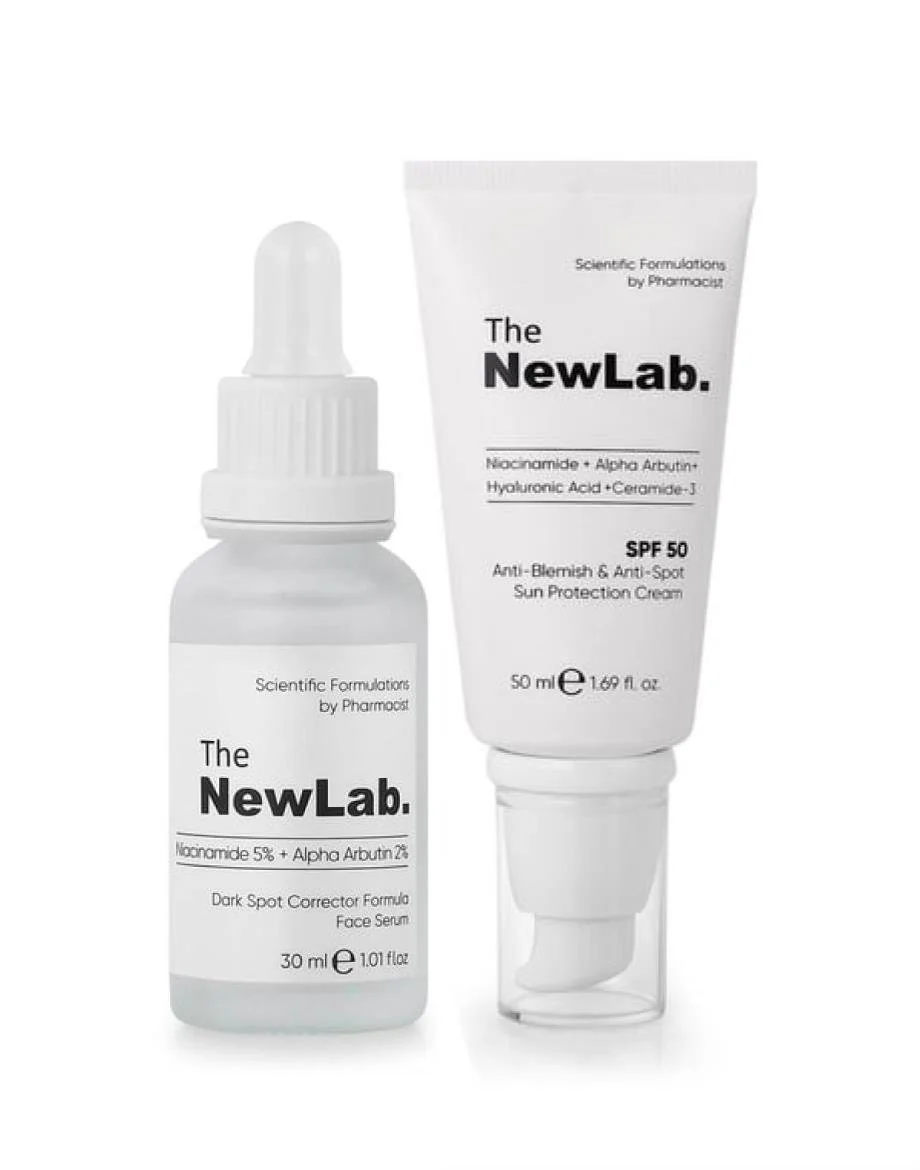 Този комплект е специално създаден за премахване на тъмни петна и неравномерен тен на кожата. Niacinamide 5% + Alpha Arbutin 2% Serum изравнява тена на кожата, изсветлява петната и подобрява цялостния й вид; Докато ниацинамидът укрепва защитната бариера на кожата, алфа арбутинът изсветлява, като регулира производството на меланин. Слънцезащитният крем за предотвратяване на акне и петна SPF 50+ предлага висока защита срещу UVA и UVB лъчи, предотвратява образуването на нови петна и изравнява тена на кожата. Освен това подхранва и овлажнява кожата с керамид и хиалуронова киселина.