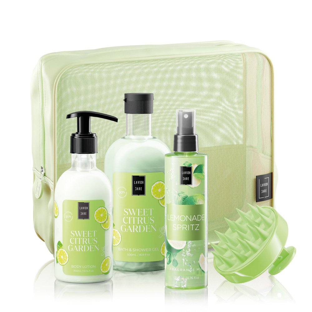 Lavish Care Sweet Citrus Garden – Подаръчен комплект чанта за грижа за тялото Комплект за грижа за тялото с тоалетна чанта